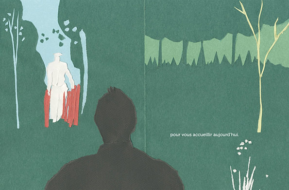 l'attente de l'invité et les préparatifs qui s'imposent pour le recevoir. A la manière d'un zoom, les illustrations se